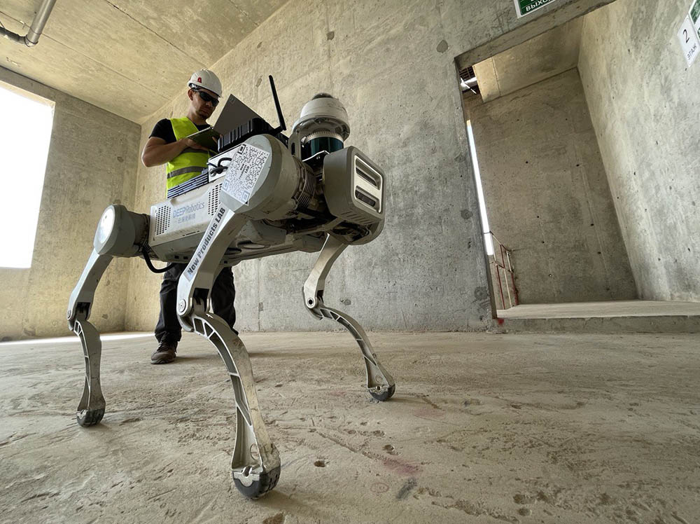 Мобильная платформа с автономной навигацией, встроенным лидаром и спутниковой системой позиционирования способна обеспечить мониторинг строительных и промышленных объектов. Робособака передвигается по заданному маршруту, а при необходимости может управляться оператором с помощью пульта. Кроме того, она водо- и пылеустойчива, а значит может работать в экстремальных условиях труда – в том числе, в шахтах, на объектах с высоким уровнем радиации, стройках.