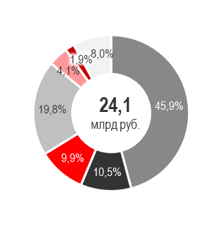 Структура рынка ПО УДИ российских разработчиков по продуктовым подсегментам, 2024 г.