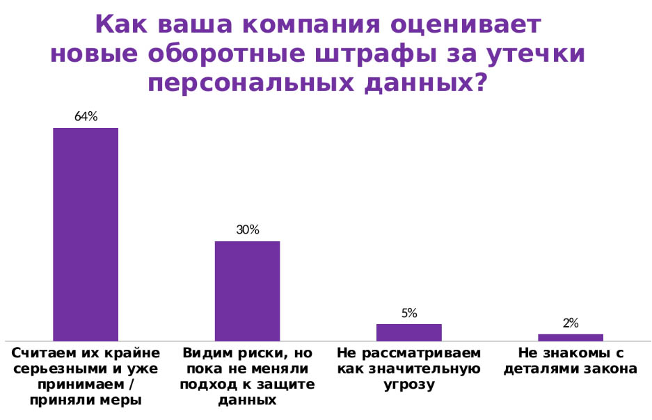 Почти две трети российских компаний воспринимают оборотные штрафы за утечки персональных данных как серьезный риск и уже усилили защиту.